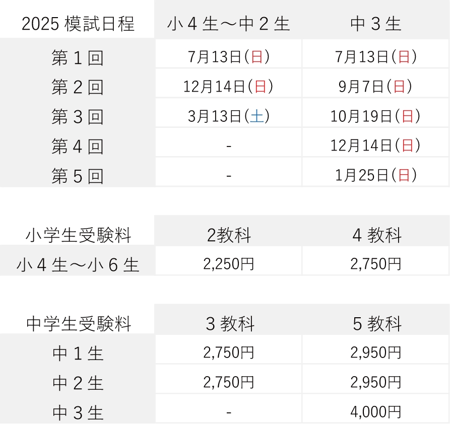 模試日程・料金